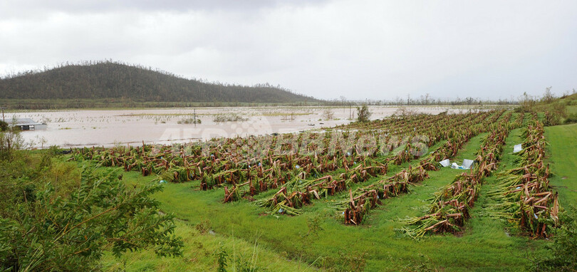 写真は、クイーンズランド州イニスフェイル(Innisfail)で、超大型サイクロン「ヤシ」の強風でなぎ倒されたバナナ畑(2011年2月3日撮影)。(c)AFP/Torsten BLACKWOOD