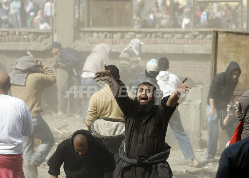 米国のヒラリー・クリントン(Hillary Clinton)国務長官はムバラク政権と反政府勢力に対し、権力移譲について「直ちに」対話を開始するよう促した。野党勢力はこれまでのところ対話を拒んでいる。(c)AFP/Samer al-Atrush