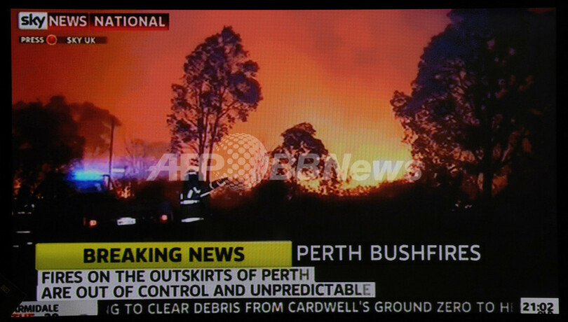 地元メディアの報道によると、パース南方の森林地帯ローリーストーン(Roleystone)地区では、山火事で最大35棟が焼失したほか、パース北方でも山火事が猛威をふるっており、150人あまりが避難を余儀なくされているという。(c)AFP