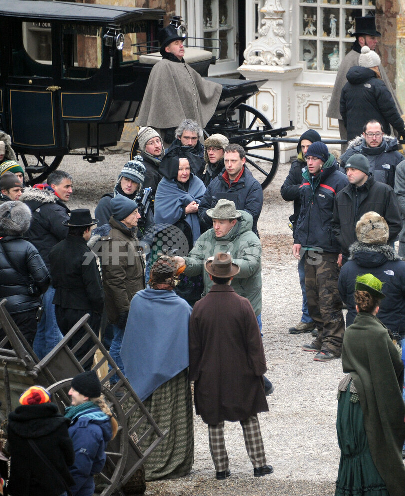ロバート・ダウニー・Jr(Robert Downey Jr.)がシャーロック・ホームズ(Sherlock Holmes)を演じ、相棒のジョン・ワトソン(John Watson)をジュード・ロウ(Jude Law)が演じた大ヒット映画の第2弾『シャーロック・ホームズ2(Sherlock Holmes 2)』の撮影が現在、フランス東部ストラスブール(Strasbourg)で行われている。監督は前作に引き続き、ガイ・リッチー(Guy Ritchie)。年末の公開を予定している。写真は、エキストラや俳優に指示を出すリッチー監督(2011年2月2日撮影)。(c)AFP/PATRICK HERTZOG