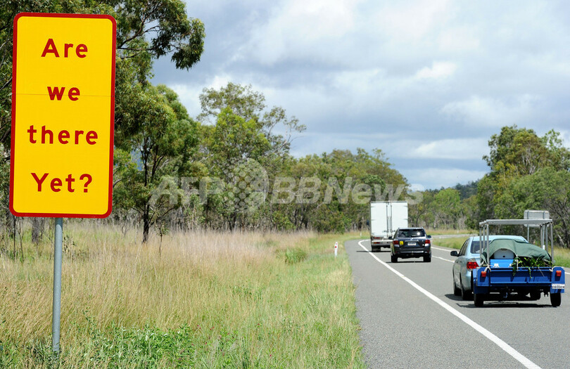 ニュース ライフ こぼれ話 眠気も吹っ飛ぶ?オーストラリアの変わった標識 2011年2月9日 15:17 発信地:オーストラリア [ アジア・オセアニア オーストラリア ] このニュースをシェア ‹ › ❮ 3/9 ❯ オーストラリアの「ブルース・ハイウェイ」で見つけた、一風変わった道路標識の数々。写真は、「ねえ、まだ着かないの?」と書かれた、居眠り運転を防ぐための標識(2011年1月7日撮影)。(c)AFP/Torsten BLACKWOOD 画像作成中 ! 【2月9日 AFP】オーストラリアの「ブルース・ハイウェイ」で見つけた、一風変わった道路標識を紹介する。(c)AFP ライフ 一覧へ> メディア・報道関係・法人の方向け 写真・動画 購入のお問合せ>