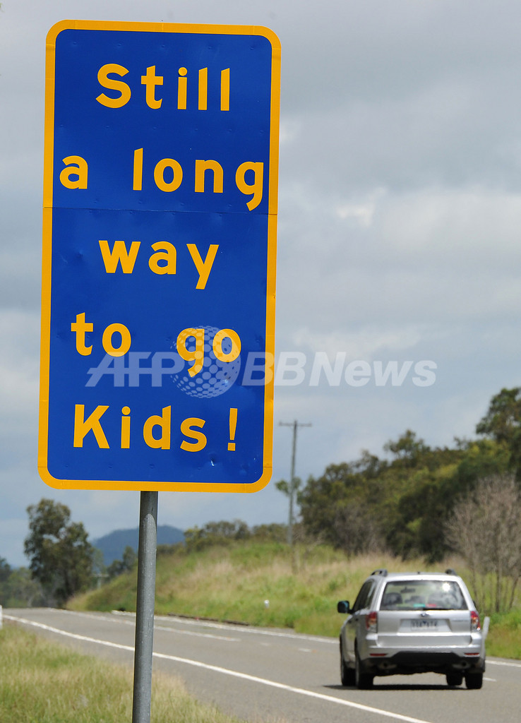 ニュース ライフ こぼれ話 眠気も吹っ飛ぶ?オーストラリアの変わった標識 2011年2月9日 15:17 発信地:オーストラリア [ アジア・オセアニア オーストラリア ] このニュースをシェア ‹ › ❮ 2/9 ❯ オーストラリアの「ブルース・ハイウェイ」で見つけた、一風変わった道路標識の数々。写真は、「まだまだ着かないよ、子どもたち!」と書かれた、居眠り運転を防ぐための標識(2011年1月7日撮影)。(c)AFP/Torsten BLACKWOOD 画像作成中 ! 【2月9日 AFP】オーストラリアの「ブルース・ハイウェイ」で見つけた、一風変わった道路標識を紹介する。(c)AFP ライフ 一覧へ> メディア・報道関係・法人の方向け 写真・動画 購入のお問合せ>