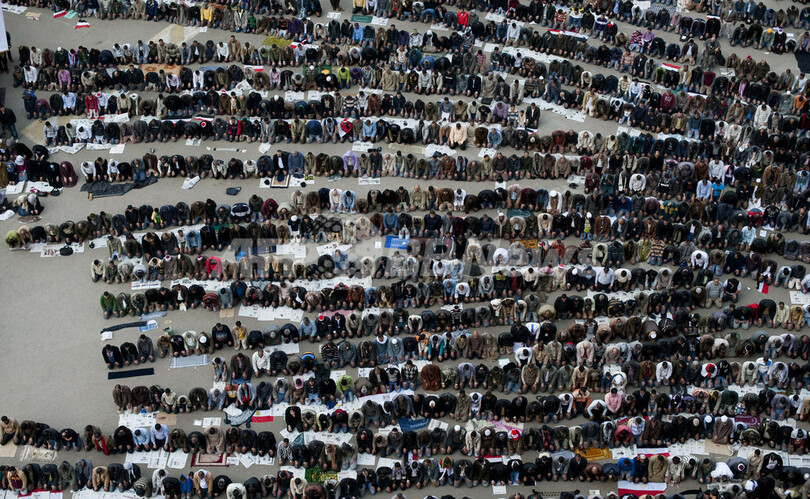 タハリール広場に集まっている反政府デモの参加者らは解散するそぶりを見せていない。カイロ(Cairo)中心部のタハリール広場(Tahrir Square)では、デモ開始以来最大規模となった8日に続き、9日も多数の市民が議事堂に向かって行進した。デモは国内全土に広がっている。