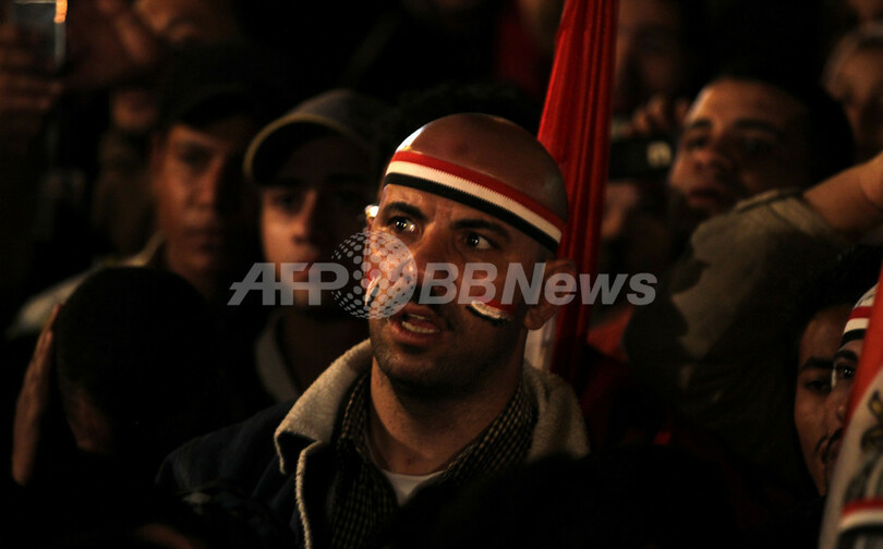 【2月11日 AFP】(写真追加)エジプトのホスニ・ムバラク(Hosni Mubarak)大統領は10日夜、国営テレビで演説し、権限をオマル・スレイマン(Omar Suleiman)副大統領に委譲すると発表したが、9月の総選挙までは辞任しない意向を示した。首都カイロ(Cairo)のタハリール広場(Tahrir Square)でムバラク大統領の演説に耳を傾けていた数10万のデモ隊からは、次々と怒りの声が上がった。(c)AFP