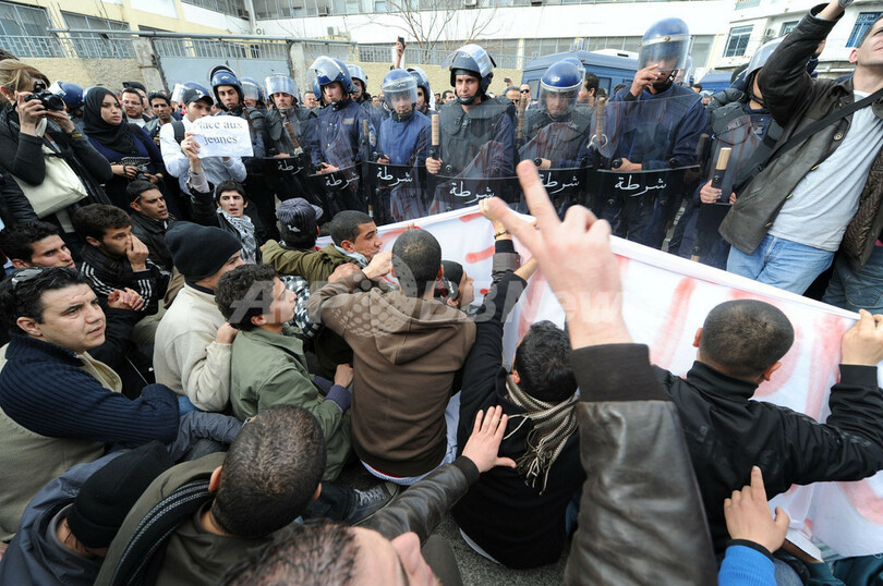 【2月13日 AFP】(写真追加)チュニジア、エジプトでの反政府デモによる政権崩壊を受け、アルジェリアでも12日、アブデルアジズ・ブーテフリカ(Abdelaziz Bouteflika)大統領の退陣を求めるデモが行われ、約2000人が参加した。