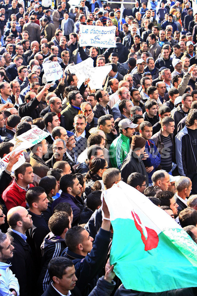 【2月13日 AFP】(写真追加)チュニジア、エジプトでの反政府デモによる政権崩壊を受け、アルジェリアでも12日、アブデルアジズ・ブーテフリカ(Abdelaziz Bouteflika)大統領の退陣を求めるデモが行われ、約2000人が参加した。