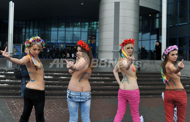 ウクライナの女性団体「FEMEN」、トップレスで抗議活動