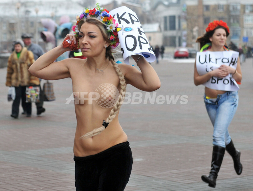 ウクライナの女性団体「FEMEN」、トップレスで抗議活動