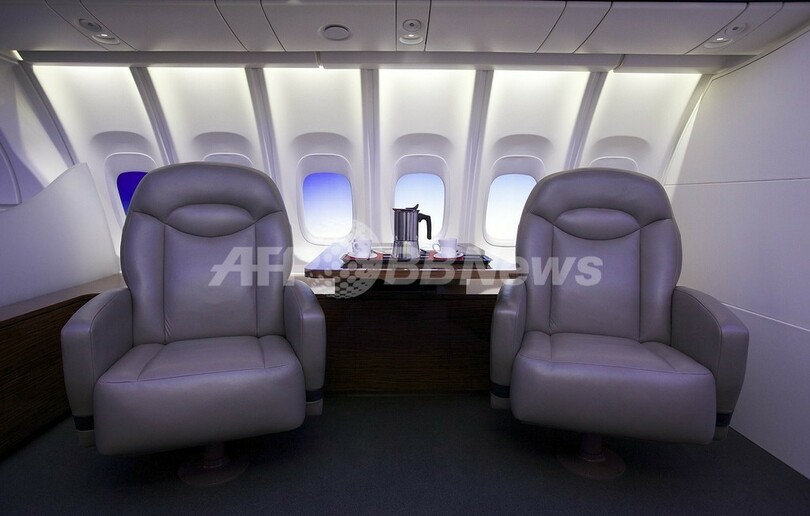 写真は、「747-8インターコンチネンタル」機内。従来より大きめの窓と新型の照明システム、なめらかなラインが特徴となっている(2011年2月12日撮影)。(c)AFP/Getty Images/Stephen Brashear