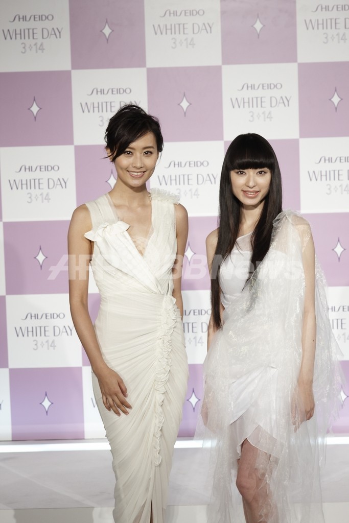 長年「美白」を研究し続け、アジアの女性を美しくすることをモットーに製品を開発、発表している資生堂が、“美白”と“北海道の真っ白な雪”を紐付け、開催に至った今回のイベント。この日、会場には資生堂インターナショナルの美白製品「ホワイトルーセント(WHITE LUCENT)」のグローバルキャンペーンモデルにも起用されている女優の栗山千明、韓国からはチェ・ジウ(Choi Ji-Woo)、中国・香港からは女優のファラ・チェン(Fala Chen)が美白大使として登場。一面銀世界のモエレ沼公園を会場に、真っ白なドレス姿で登場した3人はまるで雪の妖精のようだ。アジア人女性の美と健康、さらには美白活動の促進とPRのために3人は「美白宣言書」サインをした。(c)MODE PRESS