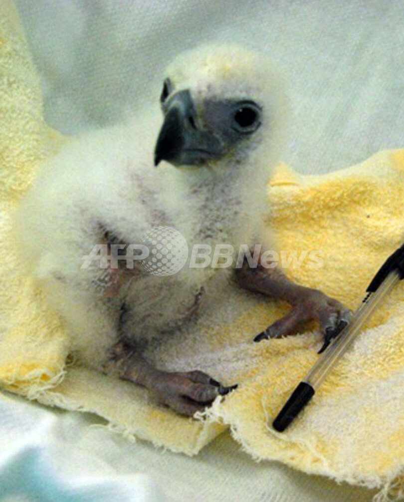 かつてはフィリピン各地の空を舞っていたフィリピンワシだが、現在では絶滅の危機に瀕している。フィリピンワシ基金は米国のコンドルやワシの保護プログラムを取り入れ、毎年フィリピンワシのひな1羽をふ化させ自然に帰すことを目的に保護活動を行っている。(c)AFP