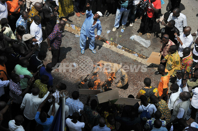 【2月18日 AFP】大統領選の結果をめぐり「2人の大統領」が就任するなど政治の混迷が続くコートジボワールで17日、カカオ農家が首都アビジャン(Abidjan)の欧州連合(EU)事務所前で大量のカカオ豆を燃やす抗議デモを行った。