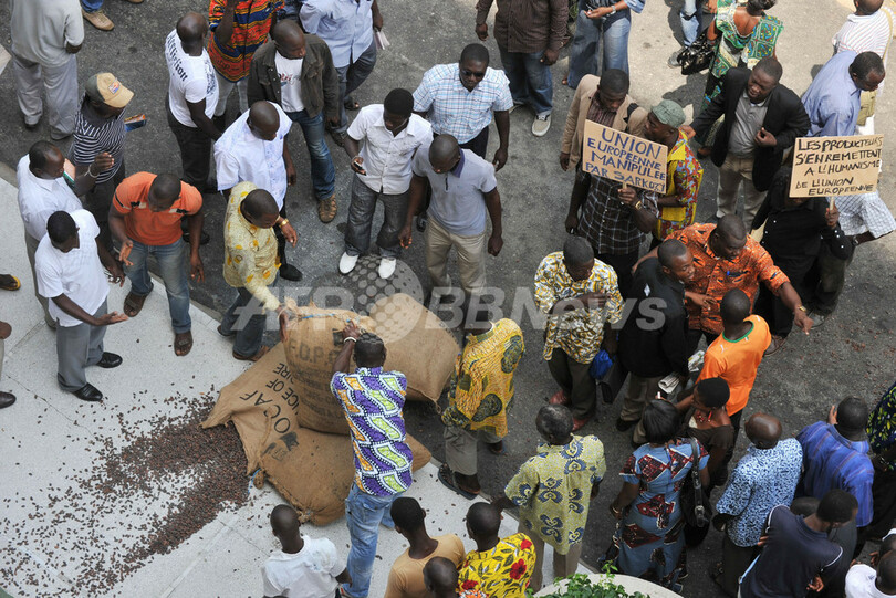 カカオ豆を輸出させろ!農民らがEUに抗議、コートジボワール