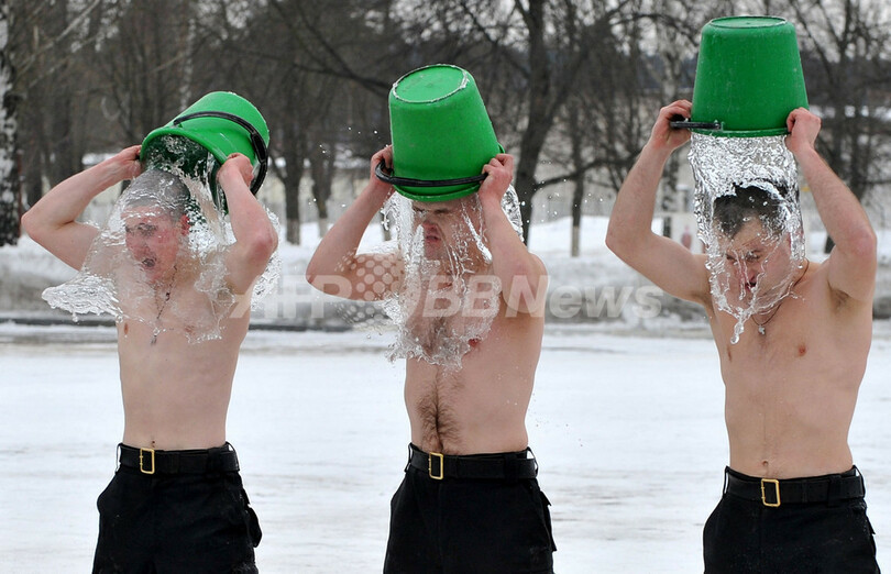 ニュース ライフ こぼれ話 先輩は瓦割りで歓迎?ベラルーシ新兵の宣誓式 2011年2月20日 18:56 発信地:ミンスク/ベラルーシ [ ロシア・CIS ベラルーシ ] このニュースをシェア ‹ › ❮ 3/6 ❯ ベラルーシのミンスク(Minsk)で行われた、徴兵された新兵たちによる宣誓式で、冷水をかぶる兵士たち(2011年2月19日撮影)。(c)AFP/VIKTOR DRACHEV 画像作成中 ! 【2月20日 AFP】ベラルーシのミンスク(Minsk)で19日、徴兵された新兵たちによる宣誓式が行われた。(c)AFP【関連記事】冬の寒さにも負けない、ベラルーシ兵が雪上軍事訓練 ライフ 一覧へ> メディア・報道関係・法人の方向け 写真・動画 購入のお問合せ>