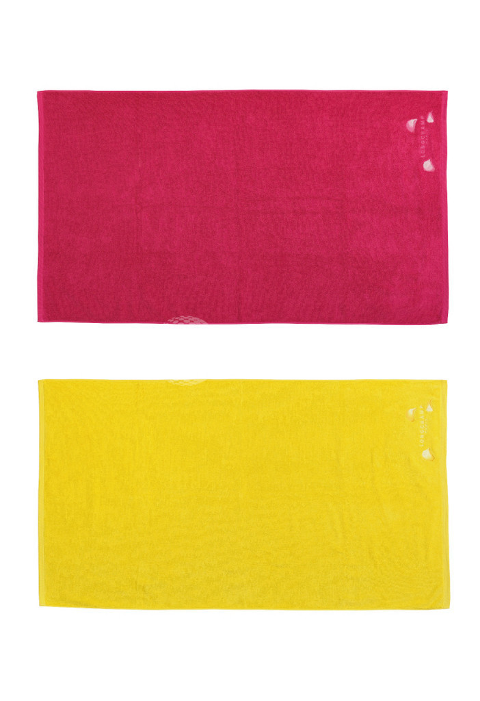 フューシャピンクやサンシャインイエローの鮮やかな花びらが転写プリントされた、コットンキャンバスのバッグやポーチ、トラベルバッグなどバリエーションも豊富なラインナップだ。