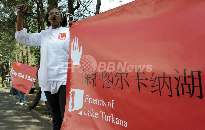 【2月24日 AFP】ケニアの環境保護団体「フレンズ・オブ・レイク・トゥルカナ(Friends of Lake Turkana、FOLT)」は20日、隣国エチオピアのオモ川(Omo River)にできる予定の大型発電用ダム、ギベ第3ダム(Gibe III Dam)の建設に中国企業が参加していることに抗議し、ケニアの首都ナイロビ(Nairobi)の中国大使館前でデモを行った。