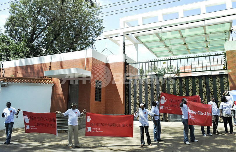 【2月24日 AFP】ケニアの環境保護団体「フレンズ・オブ・レイク・トゥルカナ(Friends of Lake Turkana、FOLT)」は20日、隣国エチオピアのオモ川(Omo River)にできる予定の大型発電用ダム、ギベ第3ダム(Gibe III Dam)の建設に中国企業が参加していることに抗議し、ケニアの首都ナイロビ(Nairobi)の中国大使館前でデモを行った。