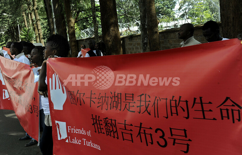 【2月24日 AFP】ケニアの環境保護団体「フレンズ・オブ・レイク・トゥルカナ(Friends of Lake Turkana、FOLT)」は20日、隣国エチオピアのオモ川(Omo River)にできる予定の大型発電用ダム、ギベ第3ダム(Gibe III Dam)の建設に中国企業が参加していることに抗議し、ケニアの首都ナイロビ(Nairobi)の中国大使館前でデモを行った。
