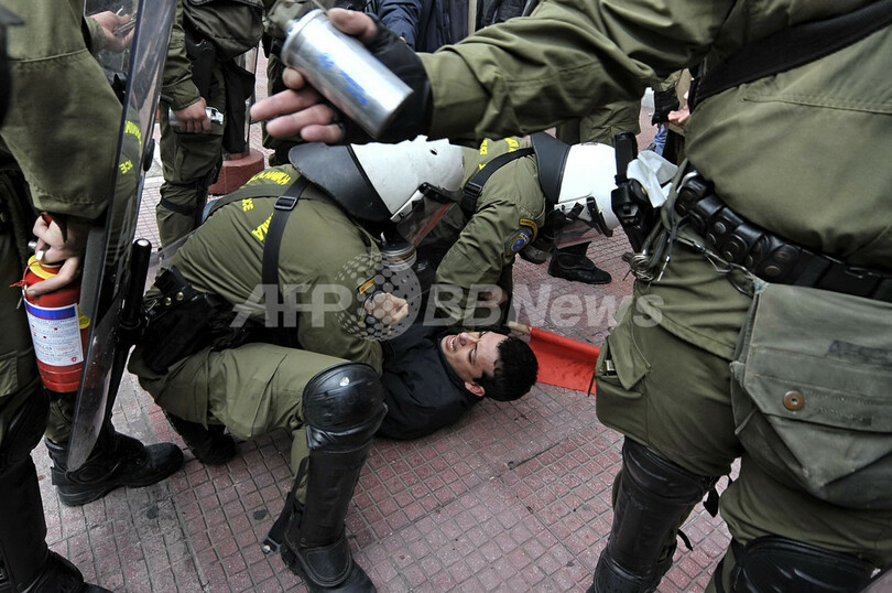 【2月24日 AFP】財政危機に陥っているギリシャで23日、パパンドレウ政権の緊縮政策に反対する全国規模の24時間ストライキが今年初めて行われ、一部で参加者と警官隊が激しく衝突した。