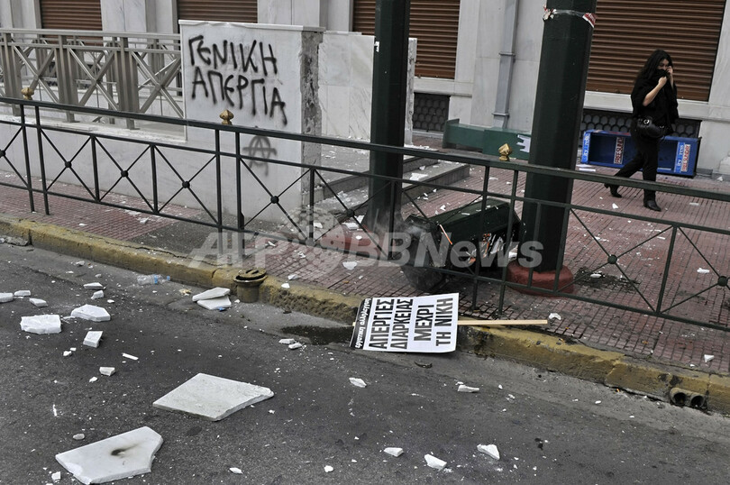 警察発表によると首都アテネ(Athens)、テッサロニキ(Thessaloniki)、ピレウス(Piraeus)などで少なくとも3万6000人が参加。アテネ中心部の国会議事堂前にあるシンタグマ広場(Syntagma Square)では、覆面の若者たちが機動隊に石や火炎瓶を投げつけ、これに機動隊が応酬し発射した催涙ガスであたり一帯が覆われた。