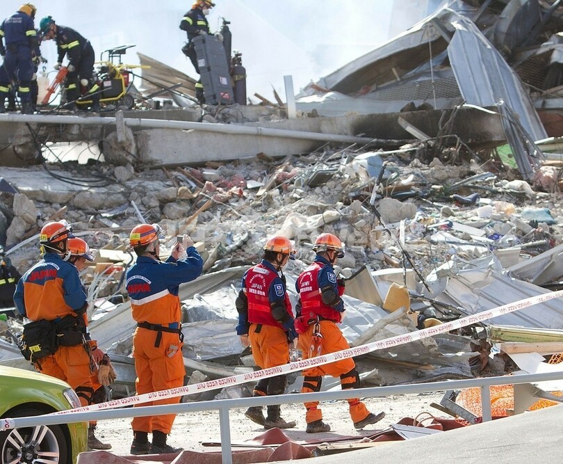豪、英、米、台湾、シンガポールの緊急援助隊は、約500人の現地救助隊を支援し、クライストチャーチ市内数か所で徹底的な捜索を行っているほか、郊外の被災地へも要員を送り込んでいる。CTVビル付近では、近くにある市内で1番高い26階建てのグランド・チャンセラー・ホテル(Grand Chancellor Hotel)が倒壊する恐れがある中、日本の国際緊急援助隊が徹底的な捜索活動を行っている。