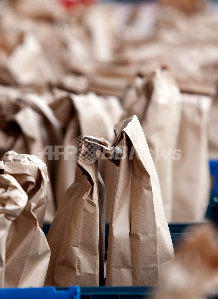 写真はクライストチャーチで、救助隊員らのために準備された昼食の袋(2011年2月26日撮影)。(c)AFP/Marty Melville