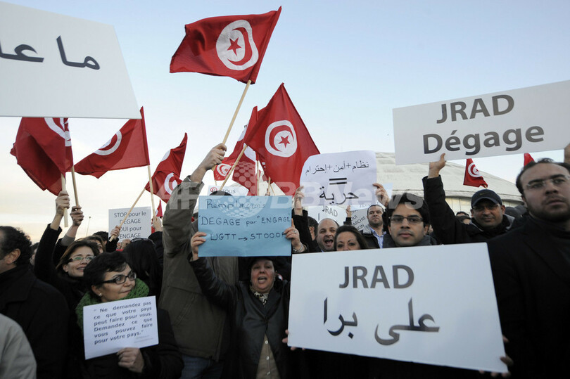 ベンアリ前大統領の亡命をうけて発足した暫定政府は、これまでにない自由を認め、前政権下で非合法とされた団体の非合法指定の解除や亡命者の帰国への道を開くと言明してきた。だが、暫定政府にはベンアリ旧政権の閣僚が含まれていることから、これらの閣僚の辞任を求める抗議デモは収まる気配をみせていない。