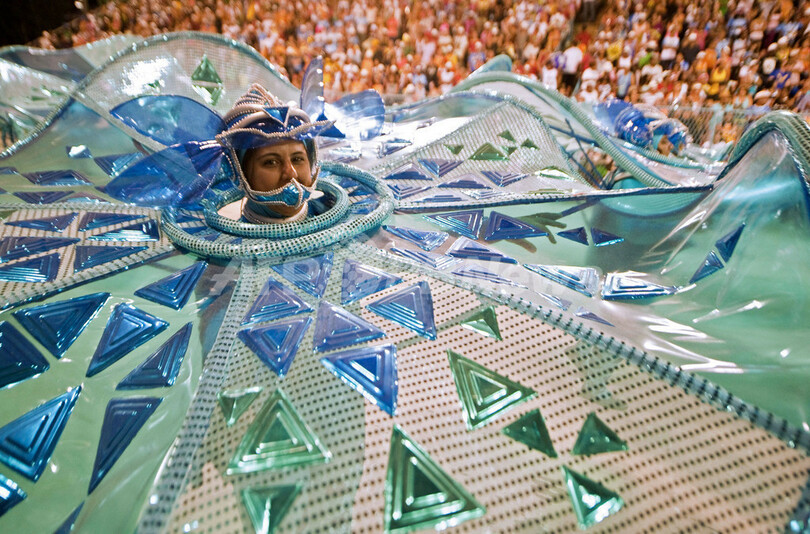 【3月7日 AFP】南米ブラジルのリオデジャネイロ(Rio de Janeiro)で6日に開幕したカーニバルは同日夜から、様々なサンバチームが壮大な山車の上で華やかな衣装や踊りを競うコンテストが始まった。コンテスト会場のスタジアムでは、観衆7万人が見守るなか、2夜にわたってサンバコンテストが繰り広げられる。盛大なコンテストの映像は世界にも配信される。(c)AFP