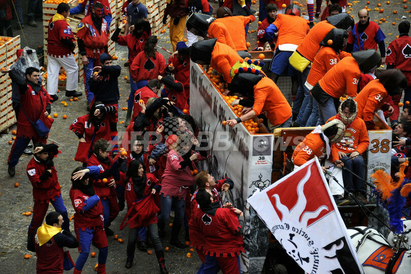 ニュース ライフ 名物カーニバル「オレンジ戦争」、イタリア 2011年3月8日 8:38 発信地:イブレア/イタリア [ ヨーロッパ イタリア ] このニュースをシェア ‹ › ❮ 4/23 ❯ イタリア北部のイブレア(Ivrea)で7日、「オレンジ戦争」と呼ばれる伝統のカーニバルが開催された。この祭りは中世の圧制者に対し民衆が起こした反乱を再現したもので、馬車に乗った圧制者の衛兵とその周りを取り囲む民衆、それぞれに扮した人びとがオレンジを投げ合った。(2011年3月7日撮影)(c)AFP/OLIVIER MORIN 【動画】オレンジを投げ合う参加者たち(YouTube/AFPBB News公式チャンネル) 画像作成中 ! 【3月8日 AFP】イタリア北部のイブレア(Ivrea)で7日、「オレンジ戦争」と呼ばれる伝統のカーニバルが開催された。この祭りは中世の圧制者に対し民衆が起こした反乱を再現したもので、馬車に乗った圧制者の衛兵とその周りを取り囲む民衆、それぞれに扮した人びとがオレンジを投げ合った。(c)AFP ライフ 一覧へ> メディア・報道関係・法人の方向け 写真・動画 購入のお問合せ>