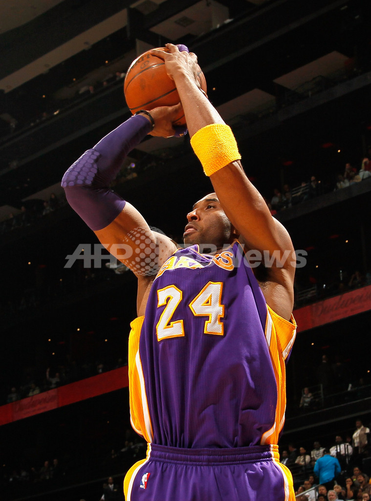 ブライアントは第2クォーター残り2分5秒に3本のフリースローを沈め、モーゼス・マローン(Moses Malone)氏の通算2万7409点を抜き通算得点ランク単独6位につけ、試合終了時には自身の通算得点を2万7423点に伸ばしている。(c)AFP