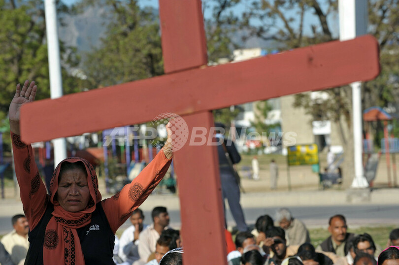 世界各地で、11日に発生した東北地方太平洋沖地震で被災した人たちのための祈りが捧げられている。写真は、パキスタン・イスラマバード(Islamabad)で祈りを捧げるクリスチャンの人びと(2011年3月12日撮影)。(c)AFP/Farooq NAEEM