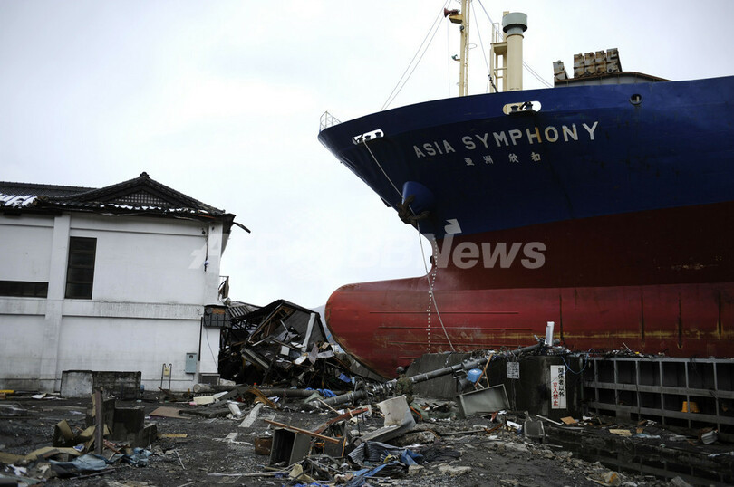 ニュース 社会 岸壁に乗り上げた大型船舶、フィリピン人乗員は全員無事 2011年3月19日 12:14 発信地:釜石/岩手 [ アジア・オセアニア 岩手 ] このニュースをシェア ‹ › ❮ 6/6 ❯ 岩手県・釜石市の岸壁に乗り上げた大型船舶「アジアシンフォニー(M.V. Asia Symphony)」(2011年3月16日撮影)。(c)AFP/TOSHIFUMI KITAMURA 画像作成中 ! 【3月19日 AFP】東北地方太平洋沖地震と津波で大きな被害を受けた岩手県釜石市の岸壁に乗り上げた船舶。この「アジアシンフォニー(M.V. Asia Symphony)」(4724トン)に乗っていたフィリピン人乗員17人は全員が無事避難し、避難所に滞在している。(c)AFP 社会 一覧へ> メディア・報道関係・法人の方向け 写真・動画 購入のお問合せ>