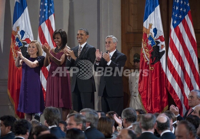 オバマ大統領の南米歴訪には、ミシェル(Michelle Obama)夫人や娘のマリア(Malia)さんとサーシャ(Sasha)さんも同行。南米で1990年に民主主義政権が復活して以来初の右派政権を南米で樹立した富豪実業家のピニェラ大統領は、21日夜にオバマ一家を公式晩さん会に招待した。