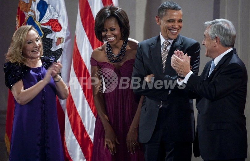 オバマ大統領の南米歴訪には、ミシェル(Michelle Obama)夫人や娘のマリア(Malia)さんとサーシャ(Sasha)さんも同行。南米で1990年に民主主義政権が復活して以来初の右派政権を南米で樹立した富豪実業家のピニェラ大統領は、21日夜にオバマ一家を公式晩さん会に招待した。