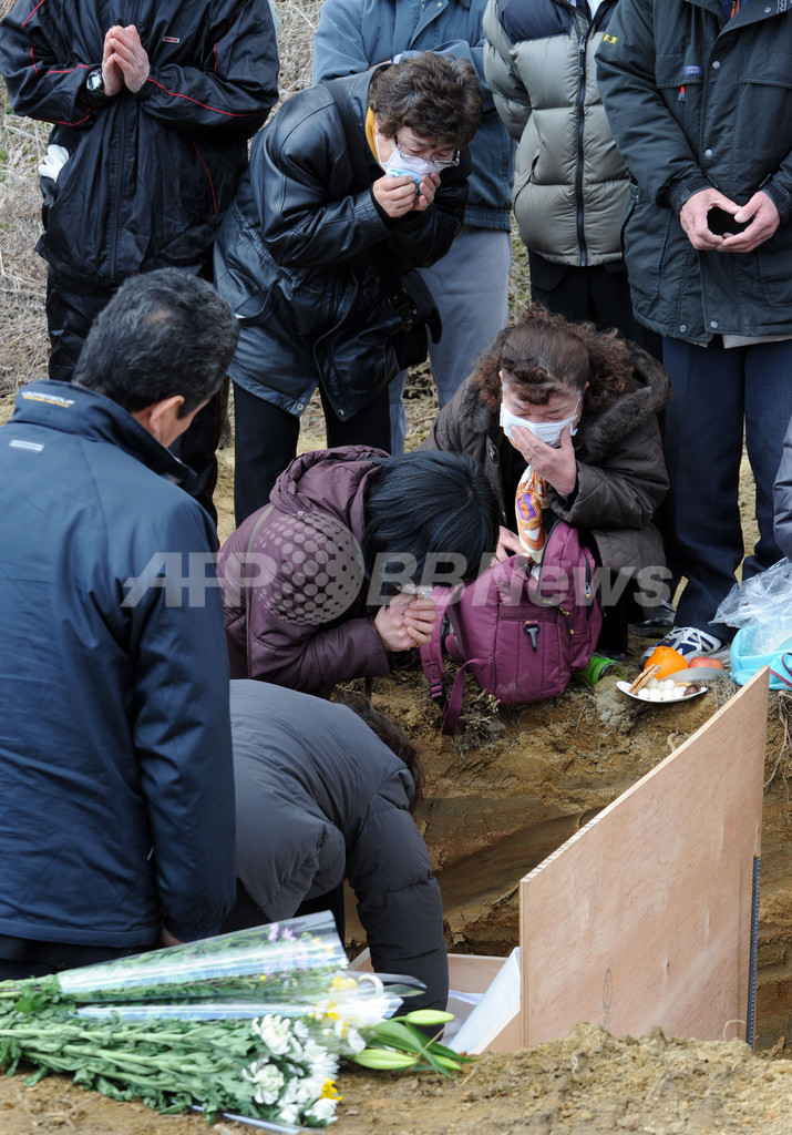 ニュース 社会 宮城・東松島市、犠牲者の埋葬始まる 2011年3月23日 15:26 発信地:東松島/宮城 [ アジア・オセアニア 宮城 ] このニュースをシェア ‹ › ❮ 9/11 ❯ 宮城県東松島市で22日、犠牲者の仮埋葬が始まった。写真は23日、犠牲者を見送る親族(2011年3月23日撮影)。(c)AFP/TOSHIFUMI KITAMURA 画像作成中 ! 【3月23日 AFP】宮城県東松島市で22日、犠牲者の仮埋葬が始まった。(c)AFP 社会 一覧へ> メディア・報道関係・法人の方向け 写真・動画 購入のお問合せ>
