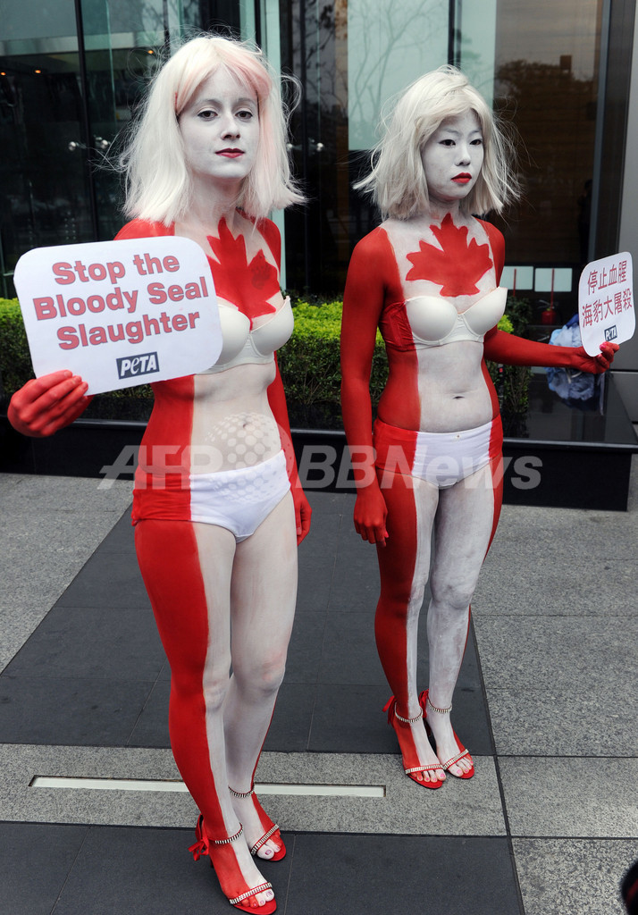 ニュース 環境・科学 「カナダ国旗」の赤白ボディでアザラシ保護を訴え、PETA 2011年3月24日 7:40 発信地:台北/台湾 [ 中国・台湾 台湾 ] このニュースをシェア ‹ › ❮ 2/2 ❯ 台湾・台北(Taipei)のカナダ貿易事務所前で、全身をカナダ国旗色に塗ってアザラシ保護を訴える動物愛護団体PETA(動物の倫理的扱いを求める人々の会)の女性メンバー(2011年3月22日撮影)。(c)AFP/Sam YEH 画像作成中 ! 【3月23日 AFP】台湾・台北(Taipei)で23日、全身をカナダ国旗色に塗った動物愛護団体PETA(動物の倫理的扱いを求める人々の会)の女性メンバー2人が、カナダ貿易事務所前でアザラシの「殺りく」をやめるよう訴えた。2人は、欧州連合(EU)や米国に倣い、台湾もアザラシの皮などを使った製品の輸入を禁止するよう訴えている。(c)AFP 環境・科学 一覧へ> メディア・報道関係・法人の方向け 写真・動画 購入のお問合せ>