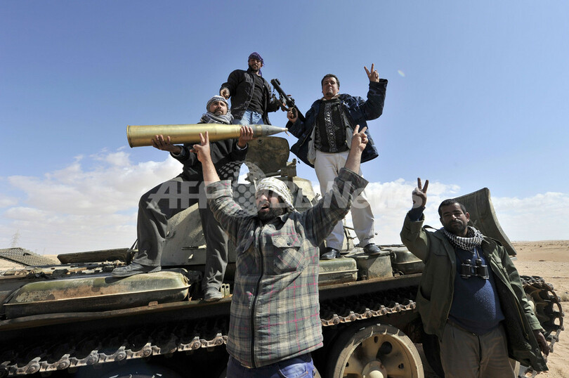 最高指導者ムアマル・カダフィ(Moamer Kadhafi)大佐のリビア政権軍は23日、反体制派が掌握する複数の都市を戦車で攻撃、民間人が相次いで避難している。一方、英司令官がリビア空軍は戦闘能力を失ったと述べるなど、多国籍軍の攻撃目標はカダフィ派の地上部隊に移りつつある。
