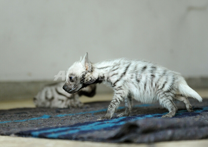 【3月25日 AFP】前月保護され、首都ナイロビ(Nairobi)のケニア野生生物庁(Kenya Wildlife Service)本部で飼育されているシマハイエナの3匹の赤ちゃん。(c)AFP