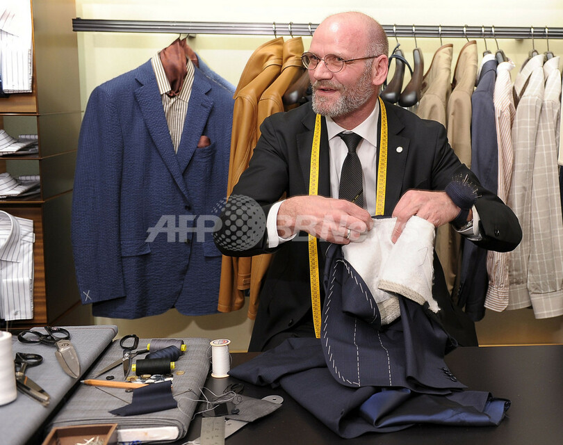 【3月28日 AFP】米ニューヨーク市内にある「エルメネジルド ゼニア(Ermenegildo Zegna)」のブティックで24日、スーツを仕立てるデモンストレーションイベントが開催された。