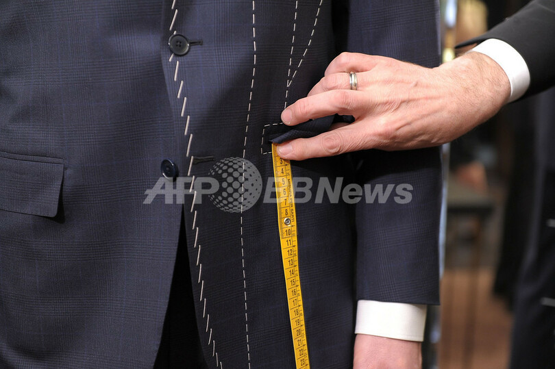 【3月28日 AFP】米ニューヨーク市内にある「エルメネジルド ゼニア(Ermenegildo Zegna)」のブティックで24日、スーツを仕立てるデモンストレーションイベントが開催された。