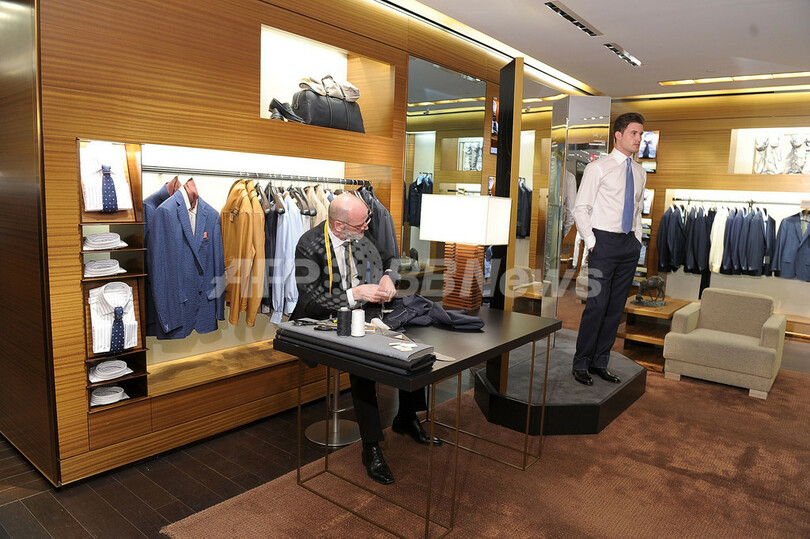 【3月28日 AFP】米ニューヨーク市内にある「エルメネジルド ゼニア(Ermenegildo Zegna)」のブティックで24日、スーツを仕立てるデモンストレーションイベントが開催された。