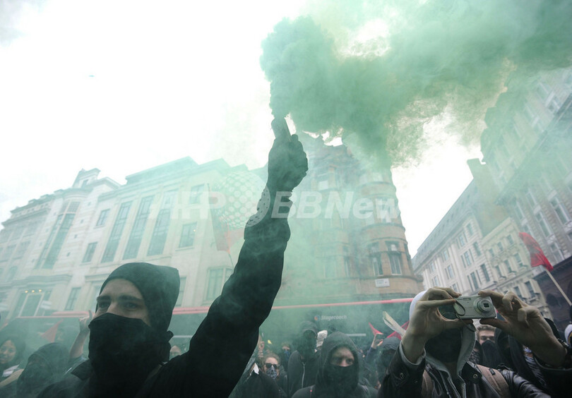 ニュース 政治・経済 ロンドンで大規模デモ、緊縮財政に反対 一部暴徒化 2011年3月27日 12:35 発信地:ロンドン/英国 [ ヨーロッパ 英国 ] このニュースをシェア ‹ › ❮ 10/10 ❯ ロンドン(London)で26日、英政府の緊縮財政政策に反対する最大30万人規模の抗議デモが行われ、デモ隊の一部は、警官隊と衝突して店舗を破壊し、高級店を占拠した。写真は、ロンドン中心部で発煙弾を掲げるデモ参加者(2011年3月26日撮影)。(c)AFP/CARL COURT 画像作成中 ! 【3月27日 AFP】ロンドン(London)で26日、英政府の緊縮財政政策に反対する最大30万人規模の抗議デモが行われ、デモ隊の一部は、警官隊と衝突して店舗を破壊し、高級店を占拠した。(c)AFP 政治・経済 一覧へ> メディア・報道関係・法人の方向け 写真・動画 購入のお問合せ>