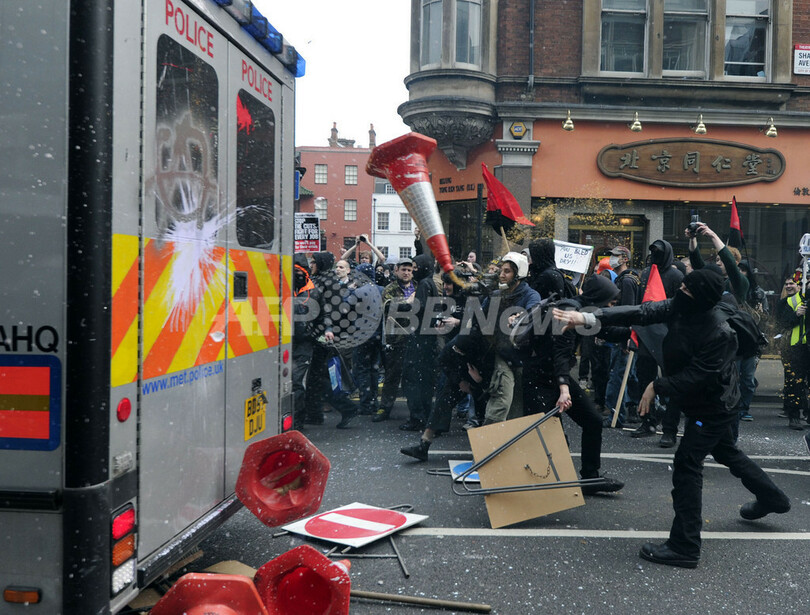 ニュース 政治・経済 ロンドンで大規模デモ、緊縮財政に反対 一部暴徒化 2011年3月27日 12:35 発信地:ロンドン/英国 [ ヨーロッパ 英国 ] このニュースをシェア ‹ › ❮ 9/10 ❯ ロンドン(London)で26日、英政府の緊縮財政政策に反対する最大30万人規模の抗議デモが行われ、デモ隊の一部は、警官隊と衝突して店舗を破壊し、高級店を占拠した。写真は、ロンドン中心部で衝突するデモ隊と警官隊(2011年3月26日撮影)。(c)AFP/CARL COURT 画像作成中 ! 【3月27日 AFP】ロンドン(London)で26日、英政府の緊縮財政政策に反対する最大30万人規模の抗議デモが行われ、デモ隊の一部は、警官隊と衝突して店舗を破壊し、高級店を占拠した。(c)AFP 政治・経済 一覧へ> メディア・報道関係・法人の方向け 写真・動画 購入のお問合せ>