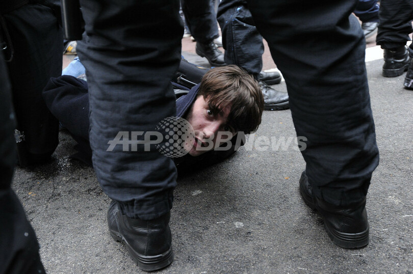ニュース 政治・経済 ロンドンで大規模デモ、緊縮財政に反対 一部暴徒化 2011年3月27日 12:35 発信地:ロンドン/英国 [ ヨーロッパ 英国 ] このニュースをシェア ‹ › ❮ 5/10 ❯ ロンドン(London)で26日、英政府の緊縮財政政策に反対する最大30万人規模の抗議デモが行われ、デモ隊の一部は、警官隊と衝突して店舗を破壊し、高級店を占拠した。写真は、ロンドン中心部で警察官に拘束されたデモ参加者(2011年3月26日撮影)。(c)AFP/CARL COURT 画像作成中 ! 【3月27日 AFP】ロンドン(London)で26日、英政府の緊縮財政政策に反対する最大30万人規模の抗議デモが行われ、デモ隊の一部は、警官隊と衝突して店舗を破壊し、高級店を占拠した。(c)AFP 政治・経済 一覧へ> メディア・報道関係・法人の方向け 写真・動画 購入のお問合せ>