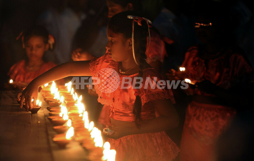 写真は、地震・津波犠牲者の追悼儀式で、ロウソクに火をともす少女(2011年3月27日撮影)。(c)AFP/Ishara S.KODIKARA