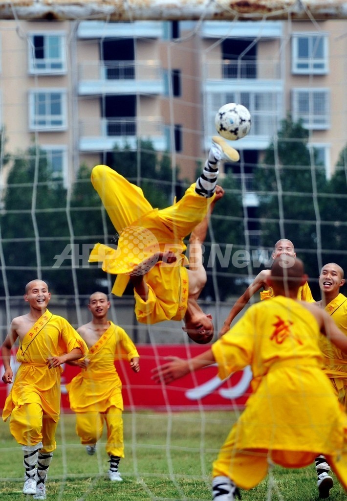 【3月28日 AFP】(写真追加)少林拳で知られる中国・河南(Henan)省の嵩山少林寺(Shaolin Temple)が、香港の大ヒットコメディ映画『少林サッカー(Shaolin Soccer)』(2001年)で繰り広げられた超人的なサッカー技を地でいくプレーで、低迷する中国サッカーを救う日が来るかもしれない。