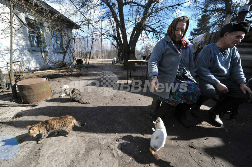 年金生活者の夫婦、マリア・セメニュク(Maria Semenyuk)さん(73)とイワン(Ivan)さん(75)もやはり「ゾーン」内の村、パリチフ(Parychiv)に暮らす。日本の原発事故に関する情報が少ないことは、チェルノブイリの事故当時を思い出させると言う。「私たちは何も聞かされなかった。あの日は集団農場でリンゴを植えたところだったんだ。そうしたら当局から、みんなで3日間だけ避難するって言われたのさ。大変なことだなんて誰も思わなかった」。大災害だったにもかかわらず夫妻は2年後、チェルノブイリに戻った。今は森でキノコ狩りを楽しみ、地元の果実でワインさえ作り、訪れる人にグラスでふるまっている。