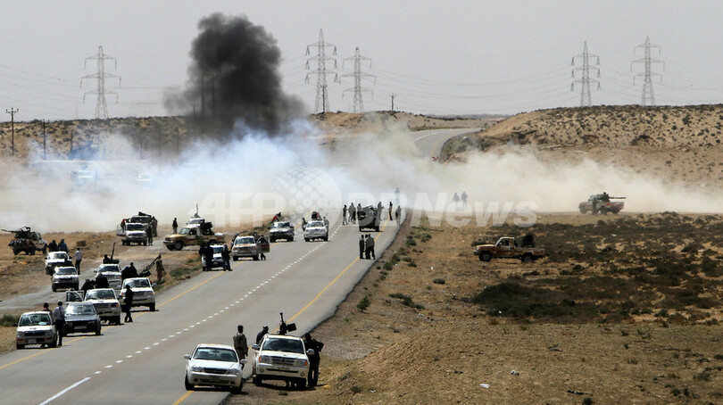 AFP記者によると、政権軍は31日、東部石油都市ブレガ(Brega)近郊にせまり、反体制派と激しい戦闘を繰り広げた。