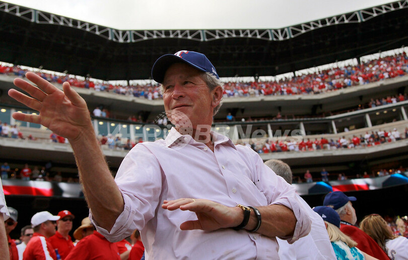 大リーグ開幕、ブッシュ前大統領がテキサス・レンジャーズ戦を観戦