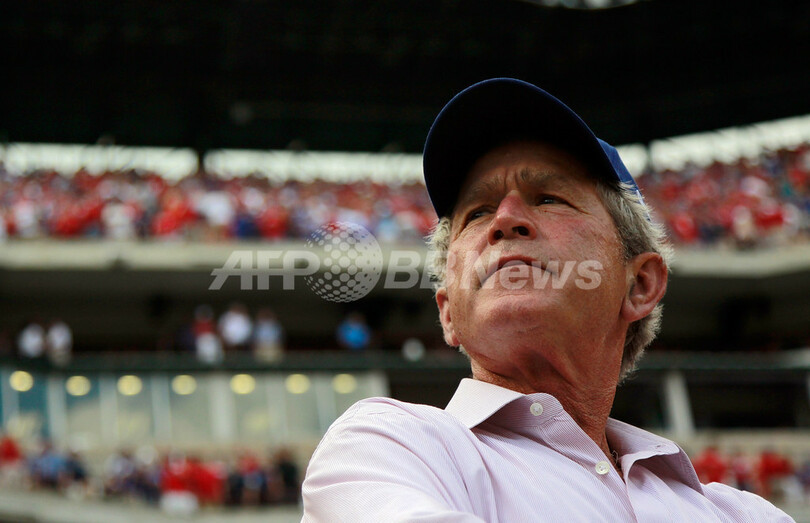 大リーグ開幕、ブッシュ前大統領がテキサス・レンジャーズ戦を観戦